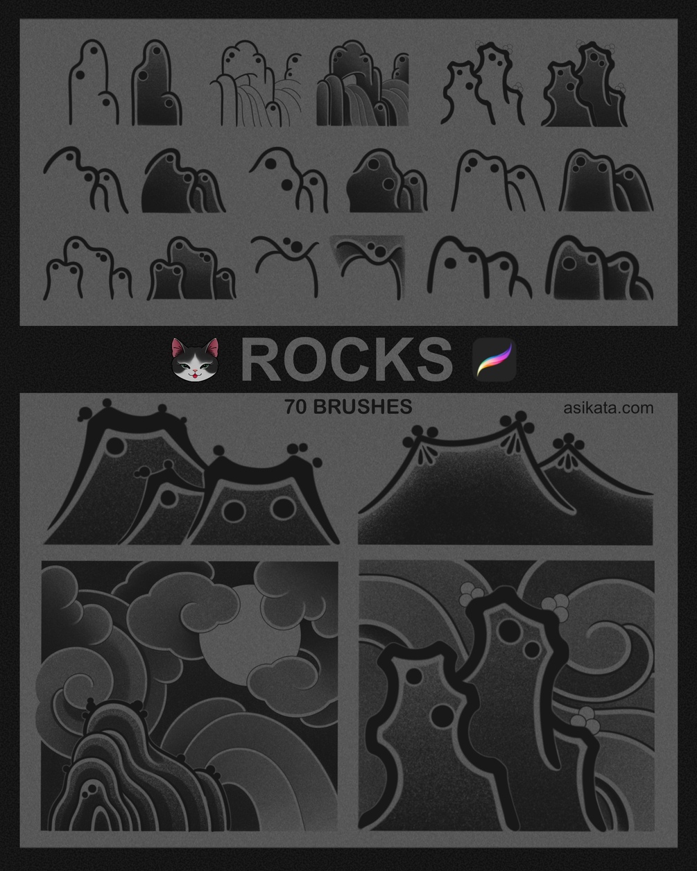 Discover the perfect toolkit with our 70 high-resolution rock brushes for Procreate. Crafted for artists looking to enhance their creations with a touch of traditional flair, these brushes come in both liner and shading versions for maximum versatility.